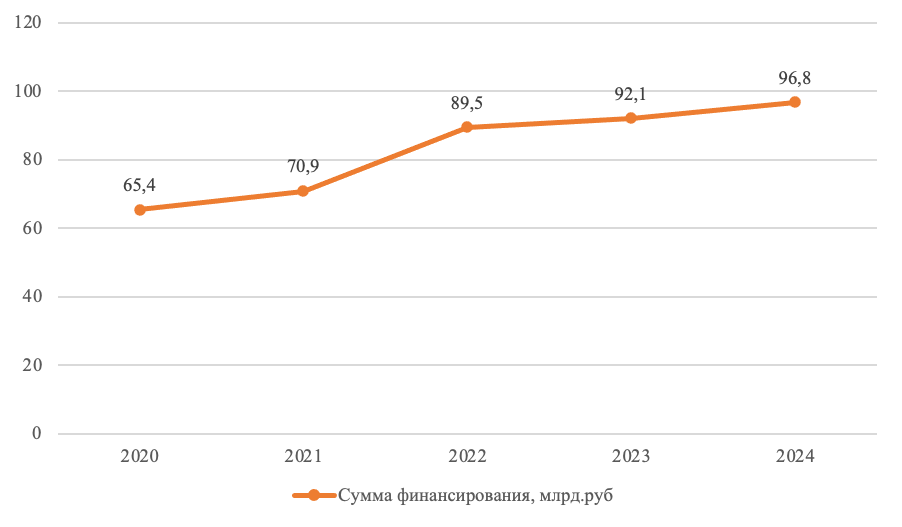 Рисунок 1. Сумма финансирования спорта и физической культуры в России 2020-2024 гг.