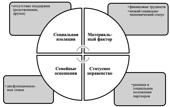 Ряд исследователей определяет социальные факторы ключевыми детерминантами формирования созависимости в супружеских парах [3, с. 108; 4, с. 219].