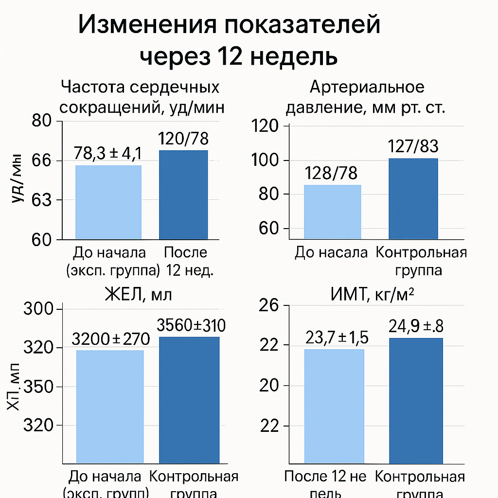 На рисунке 1 представлено сравнение динамики физиологических показателей до и после 12-недельной программы физических упражнений в экспериментальной группе.