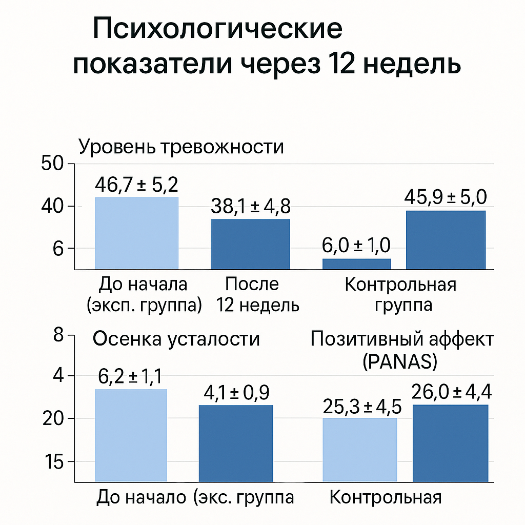 На рисунке 2 представлено сравнение психоэмоционального состояния до и после двенадцатинедельной программы.