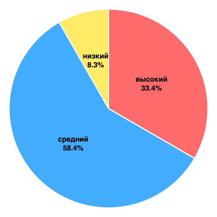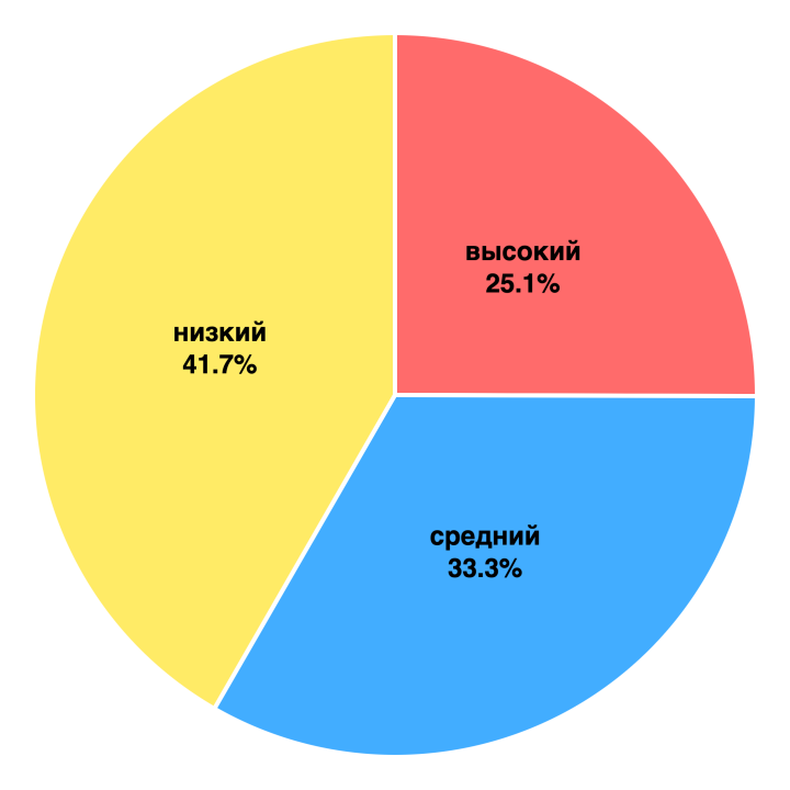 Рисунок 1. Результаты определения уровня сформированности предпосылок к учебной деятельности у детей старшего дошкольного возраста по тесту Керна-Йерасека, в % (констатирующий этап)