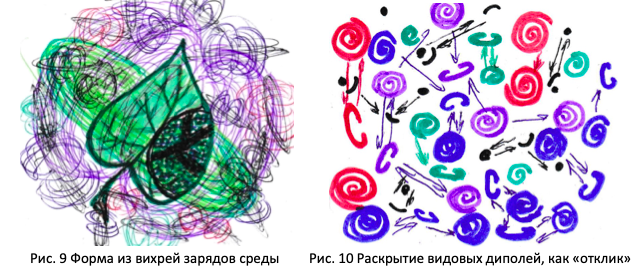 Выходит, что у всякого элемента, как и любой частицы, есть (вложена) своя «идея» (программа) достижения цели и всё определяет лишь управляющая составляющая условий реализации тех или иных потенциальных возможностей вовне каждой вибросистемы. И именно это «стремление» к преобразованиям, как «творчеству», заложено везде: и в человеке, и в атоме, и в элементарной частице, как неотъемлемый процесс роста. Когда электрический вихрь диполя постоянно поглощает заряды извне и «выдаёт» новые дипольные формы через противоположные полюса в своих смерчевых потоках, источая об этом информацию повсюду в окружении, как сигналы к поиску и образованию новых, более сложных систем.