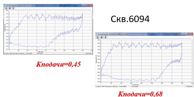 Итоги опытно-промысловых испытаний представлены на рисунке 2. Удалось достичь заявленных характеристик оборудования и результатов в виде увеличения фактического дебита испытуемых скважин и стабилизации динамического уровня.