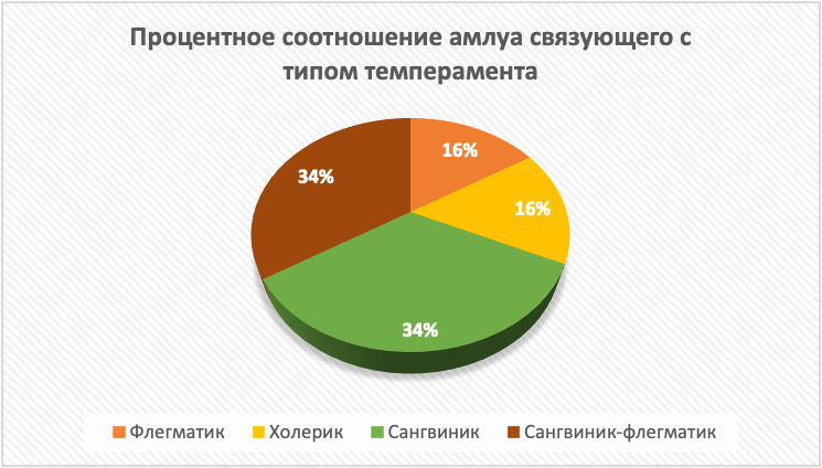 Рисунок 1. Процентное соотношение амплуа связующего с типом темперамента
