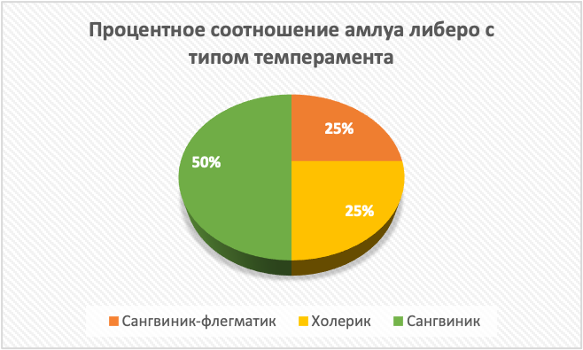 Рисунок 2. Процентное соотношение амплуа либеро с типом темперамента