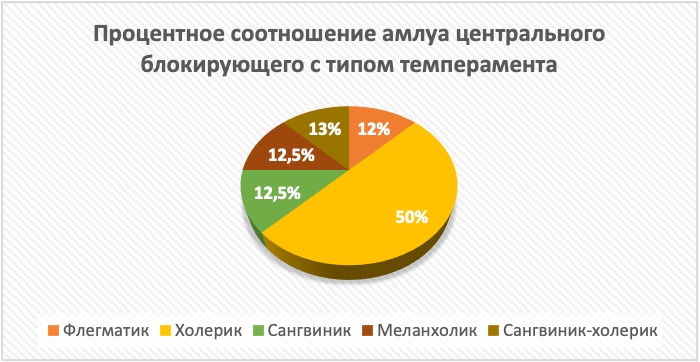 Рисунок 3. Процентное соотношение амплуа центрального блокирующего с типом темперамента (по личностному опросу Айзенка)
