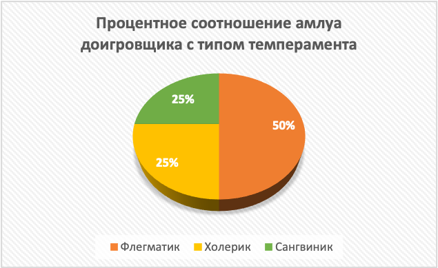 Рисунок 4. Процентное соотношение амплуа доигровщика с типом темперамента