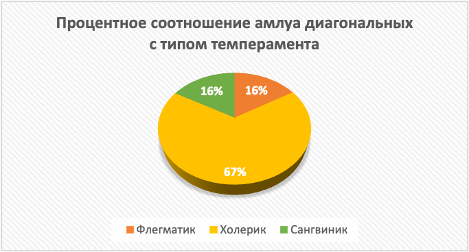 Рисунок 5. Процентное соотношение амплуа диагональных с типом темперамента