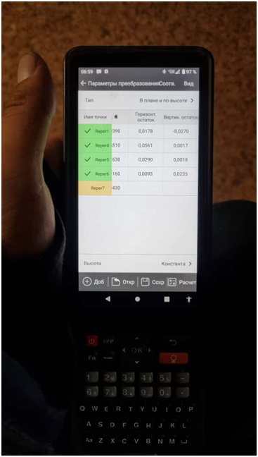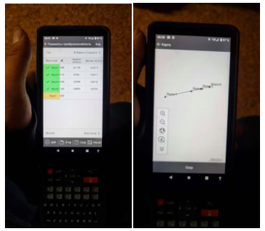 После измерений выполняется калибровка известных пунктов. В раздели «калибровка» в приложение EFTfieldsurvey, вставляется измеренные значения и исходные данные известных точек и делается расчет (рисунок 3).