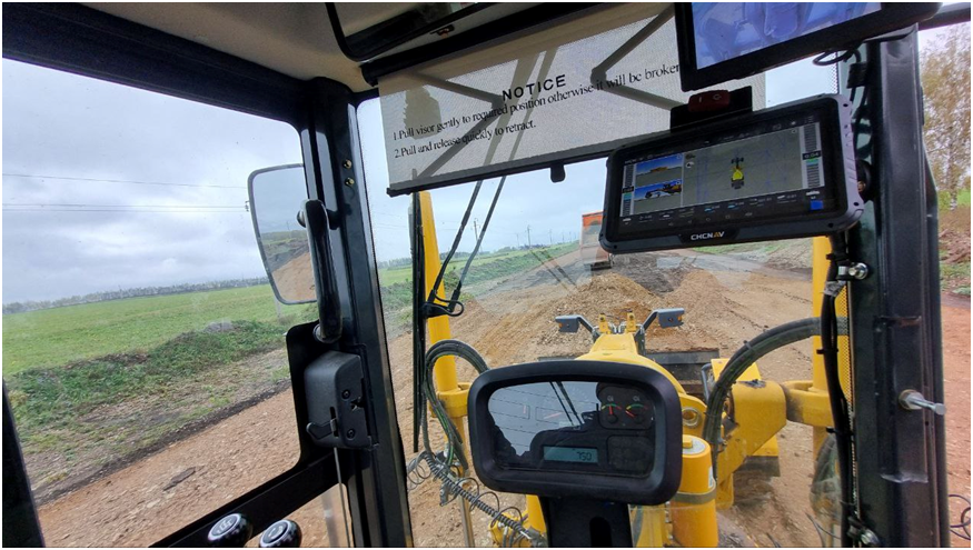 Вид из кабины автогрейдера с системой 3Dнивелирование (Рисунок 11)