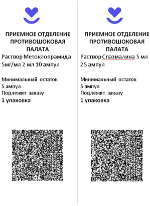 На примере ОГБУЗ «Ивнянская ЦРБ» в 2024 году был внедрен метод управления запасами «канбан» в процедурных кабинетах поликлиники. В результате модернизации карточек и внедрения QR-кодов (Рисунок 1), отметилось снижение простоев процедурного кабинета. Карточка объединяет в себе так же технологию Just-in-time. Данная технология направлена на минимизацию запасов путем поставки материалов непосредственно перед использованием. Это снижает затраты на хранение и уменьшает потребность в складских помещениях. Однако требует высокого уровня координации с поставщиками и четкого планирования потребностей. Все это увеличело эффективность учета и расходования лекарственных препаратов и медицинских изделий. Что так же привело к значительному экономическому эффекту и увеличению производительности труда.