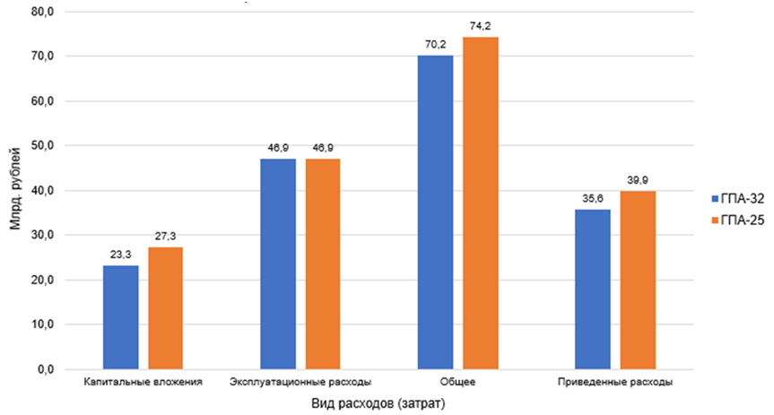 3. Сравнительная оценка подтвердила, что вариант с ГПА-32 экономически эффективнее альтернативы: он обеспечивает снижение суммарных приведенных затрат на 11%, демонстрируя преимущества долгосрочного подхода над минимизацией первоначальных вложений.