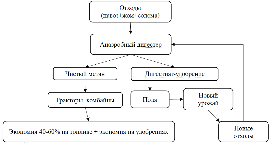 Рисунок 1. Биогазовый цикл на сельскохозяйственном предприятии