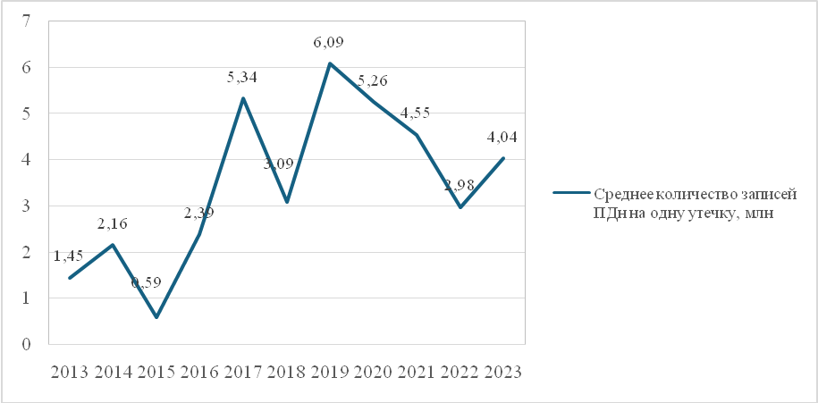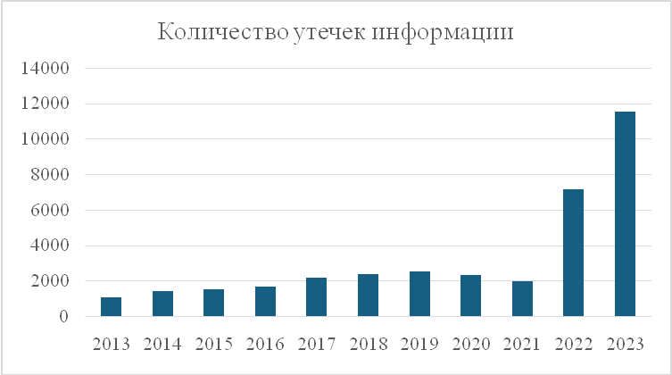 Рисунок 3. Количество утечек информации в России, 2013-2023
