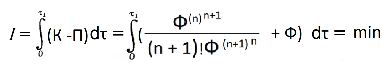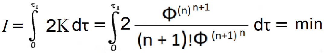 Потенциал неравновесного состояния Φ и термодинамическое время τ из Общего начала термодинамики определены экстремально: как было сказано выше, система достигает равновесного состояния за кратчайшее время. Других независимых переменных, управляющих процессом развития системы, не имеется. Уравнение семейства энергетических траекторий спонтанного процесса можно получить решением дифференциального уравнения, в котором дифференциал потенциала неравновесного состояния принят тождественным дифференциалу от производной по термодинамическому времени (n)-го порядка этого же потенциала при условии, что производная порядка (n+1) есть величина постоянная, т.е. Φ(n+1) = const. Следовательно, в равновесном состоянии все производные равны нулю, кроме постоянной Φ(n+1).