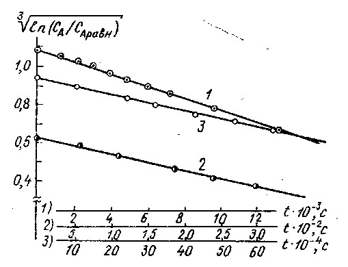 (ln СА равн ─ ln CА )1/ n+1 = const (tравн ─ t)