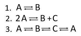 Во всех трех случаях химический процесс начинается с прямой реакции, в которой участвует только молекулы реагента А. Это позволяет использовать уравнение траектории в его простейшей форме: