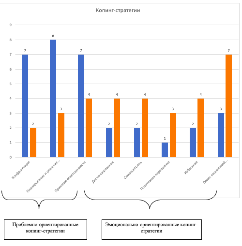 Результаты исследования копинг-стратегий представлены на рисунке 2 (в абсолютных значения).