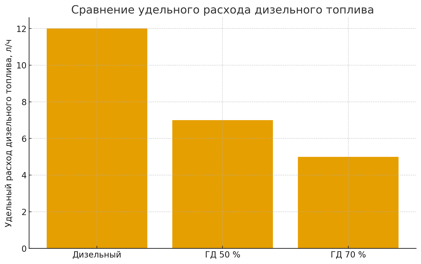 Удельный расход дизельного топлива, л/ч |