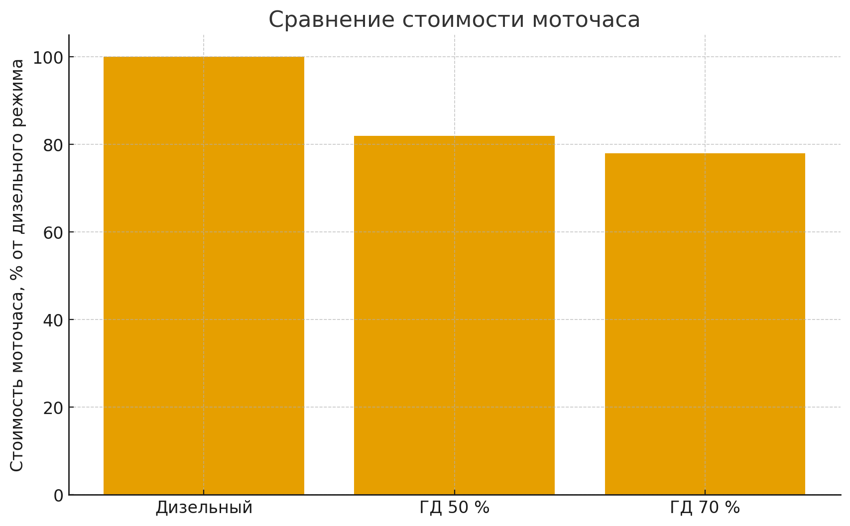 Рисунок 2. Стоимость моточаса трактора в дизельном и газодизельных режимах
