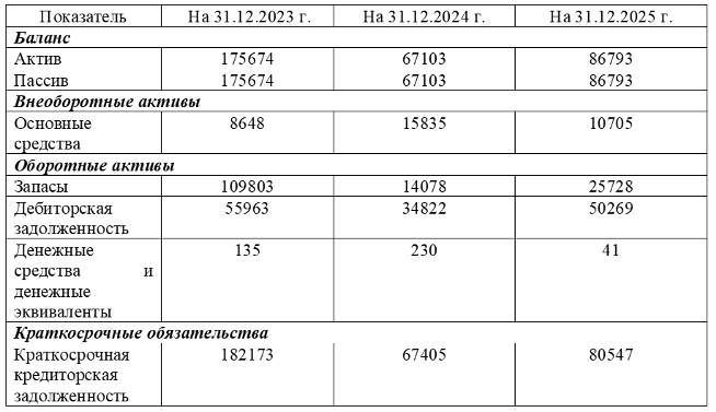В ходе исследования использовались методы сравнительного анализа, горизонтального и вертикального анализа бухгалтерской отчётности, а также метод экономических коэффициентов. Информационной базой исследования послужили данные бухгалтерского баланса и отчёта о финансовых результатах предприятия ООО «Агро Виктория» за 2023–2025 гг. [1].