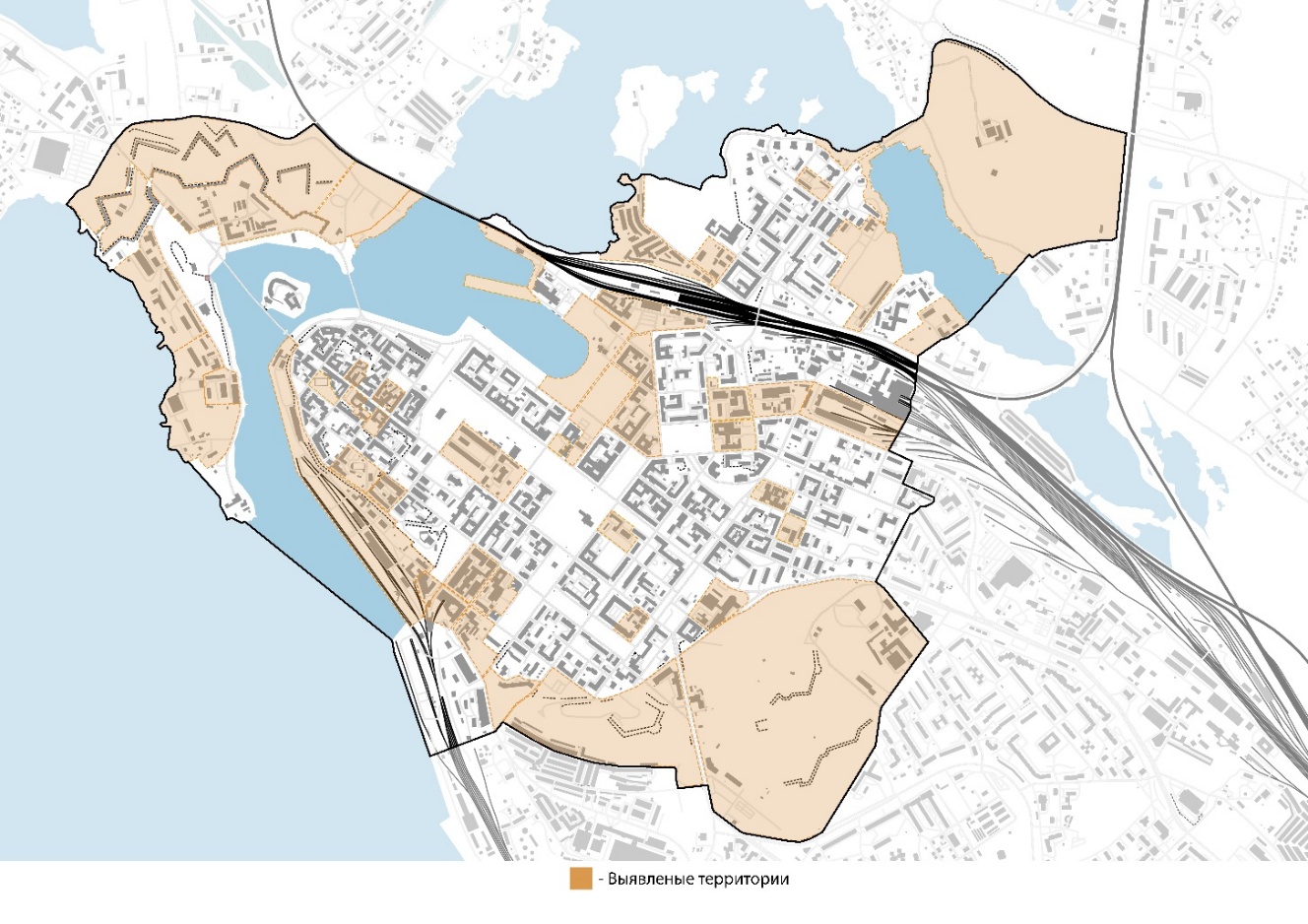 Проведенное исследование позволило выявить и систематизировать «провалы» в градостроительной ткани исторического поселения Выборг, представленные пятью основными типологическими группами: постиндустриальные и поствоенные зоны; деградирующие прибрежные участки; территории археологической фортификации, заброшенные территории и внутриквартальные лакуны.