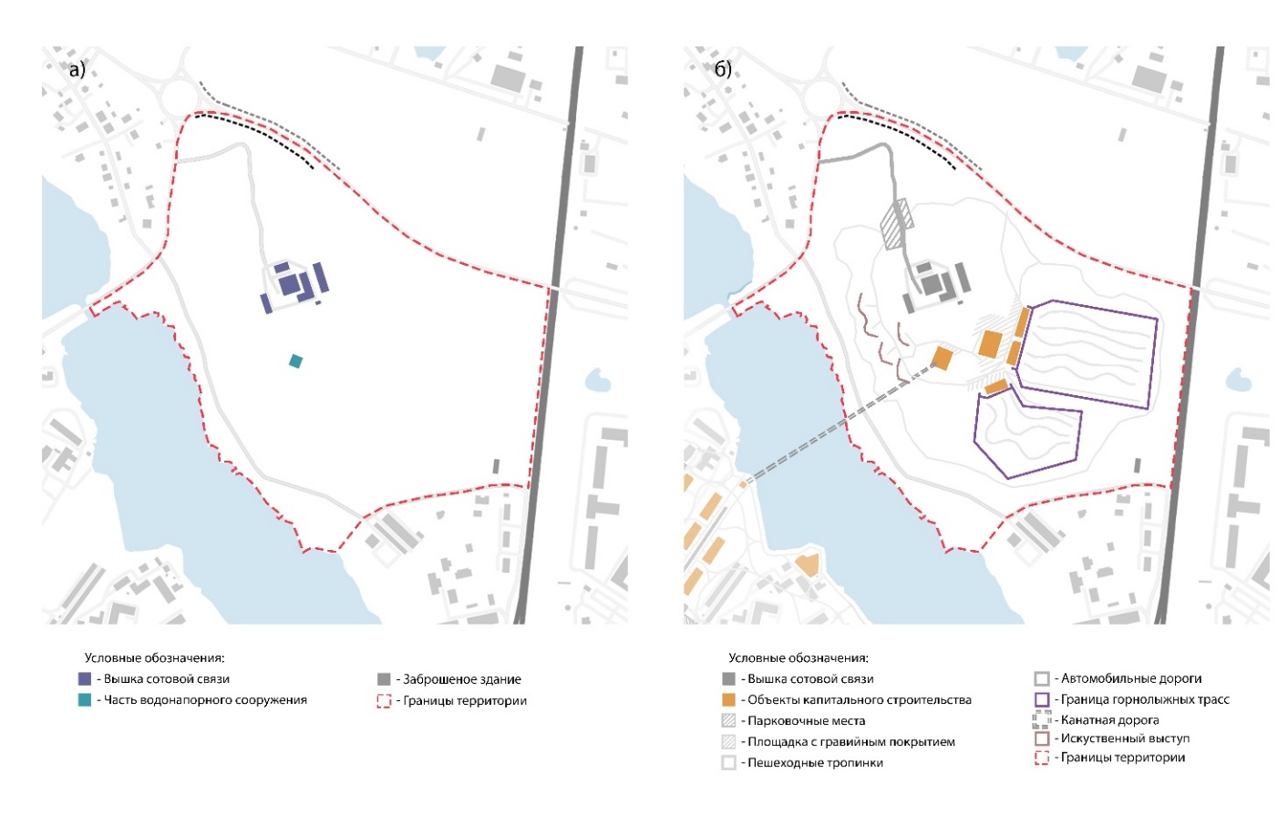 2. Гора Папула (исторический парк) представляет собой природно-ландшафтную территорию, характеризующуюся сложным рельефом и отсутствием четкого функционального назначения. Участок, расположенный на возвышенности с панорамным видом на историческую застройку, обладает выраженным рекреационным потенциалом, однако, на сегодняшний день территория не задействована. Проектное решение базируется на принципе максимального сохранения естественного ландшафта при деликатном внедрении рекреационной инфраструктуры. Предусматривается формирование сети пешеходных троп, интегрированных в единую систему маршрутов. Организация лыжной трассы позволяет актуализировать спортивную функцию территории в зимний период, а в летнее время трасса может использоваться для велогонок и соревнований по маунтинбайку, что обеспечивает круглогодичную востребованность спортивной инфраструктуры. Исторический водонапорный резервуар, расположенный на вершине, предлагается переоборудовать под кафе с панорамным остеклением, что позволит сохранить исторический объект и придать ему новую общественную функцию. Для улучшения транспортной доступности предусматривается организация канатной дороги, связывающей г. Папулу с историческим центром. На ключевых видовых точках, раскрывающих перспективу на силуэт исторического Выборга, предусмотрено устройство смотровых площадок и зон тихого отдыха, что превращает исторический парк Папула в круглогодичный центр активного отдыха и спорта (рис 3).