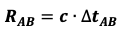 Рассмотрим простейшую нетривиальную систему: два осциллятора A и B, обменивающихся сигналами. Вследствие конечности скорости c осциллятор B получает информацию о состоянии A с задержкой tAB Эта задержка — не следствие предсуществующего расстояния, а первичный факт взаимодействия.