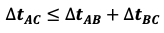Почему? Предположим, что все три осциллятора успешно синхронизированы, то есть каждый подстроил свою фазу под сигналы от других. В таком состоянии информация от A к C может передаваться двумя путями: напрямую (задержка tAC) и через B (задержка tAB+tBC). Прямой путь не может быть медленнее опосредованного — иначе система выбрала бы более быстрый маршрут, и исходная конфигурация не была бы устойчивой.