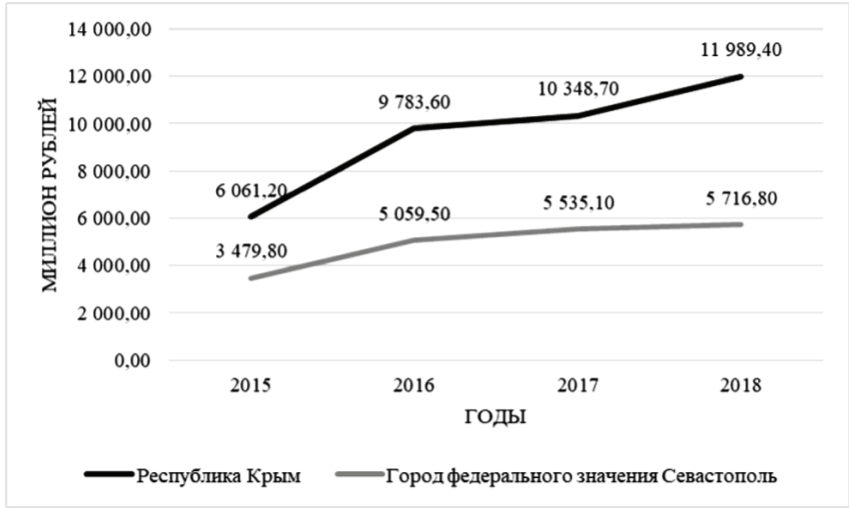 Развитие инфраструктуры общепита в Крыму подкрепляется ростом гастрономических предложений. В 2018–2019 годах туристам были доступны экскурсии на крупнейшие винзаводы («Массандра», «Новый Свет», «Коктебель»), а также уникальные фестивали и программы локальной кухни [6,7]. Результатом стало увеличение оборота общественного питания: в 2018 году он превысил уровень 2015 года в Крыму на 197,8%, в Севастополе — на 164,3% [8]. Подушевой оборот, как показатель социальной эффективности, также демонстрирует позитивную динамику.