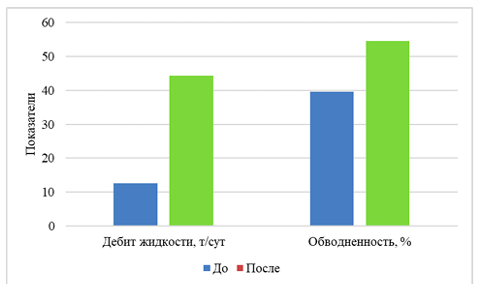 Рисунок 3. Сравнение характеристик до и после ГРП на объекте БС₁₀