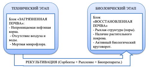 Технический этап — это ликвидация угрозы, а биологический — это лечение последствий. Только в связке они позволяют превратить «нефтяную пустыню» обратно в живой ландшафт (рис. 1).