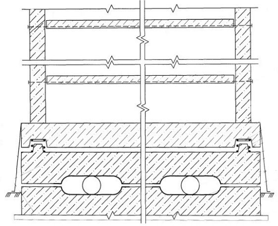 2. Для одновременного снижения материалоемкости и повышения надежности зданий при строительстве в районах с повышенной сейсмической активностью авторами Северо-Кавказского горно-металлургического института разработаны так называемые «амортизаторы фундамента». Инновация заключается в том, что фундамент состоит из платформы и опорной плиты, между которыми расположены пружинные амортизаторы. При этом на верхних этажах устанавливают вертикальные опоры, связанные вантами, на которые базируют перекрытия.